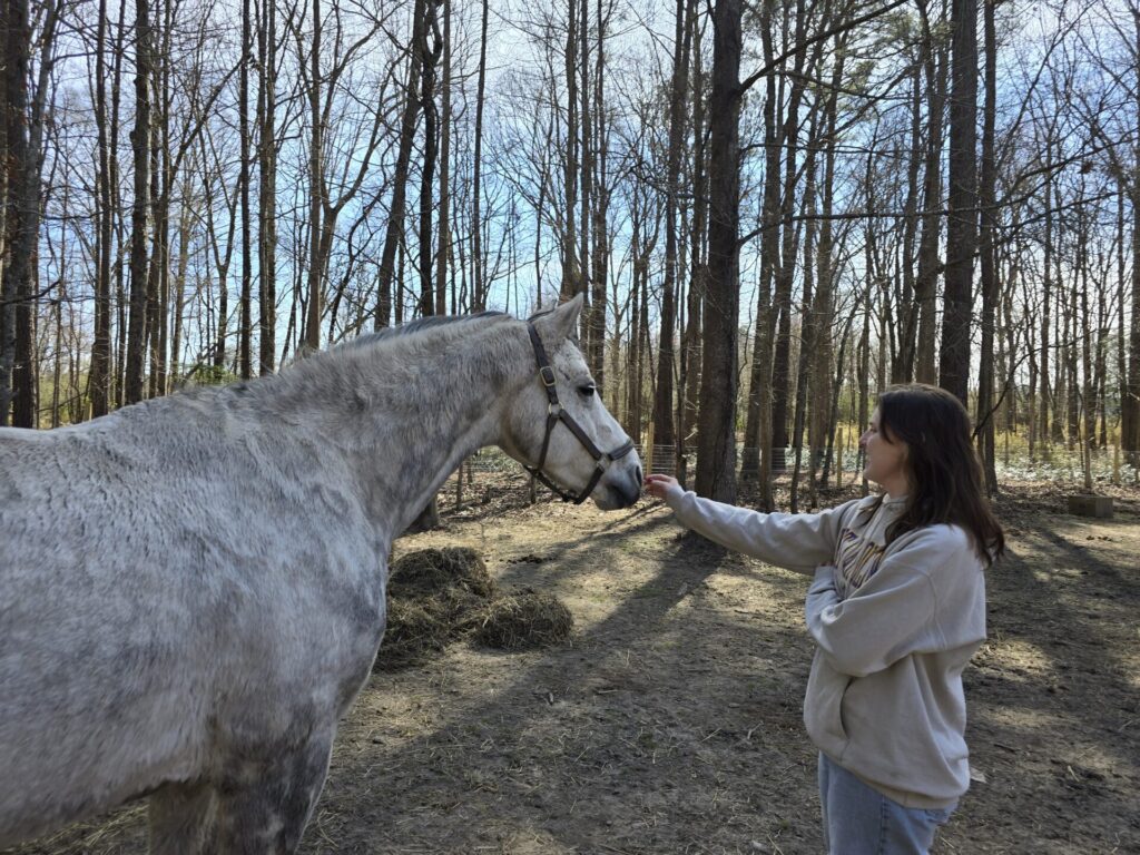 But there was a problem. There were no local opportunities to blend these two fields. So after completing my Ph.D. at ECU, I decided to forge my own path and partnered with Malaika Albrecht and Freckles Farm. Together, we met Mane Source Counseling’s very first client and began working with Bonita and Apple, two horses who turned out to be the perfect fit for our approach. The first session felt magical. The weather was beautiful, the horses were calm and connected, and the client was exactly where they needed to be. I knew immediately that this was the beginning of something special.